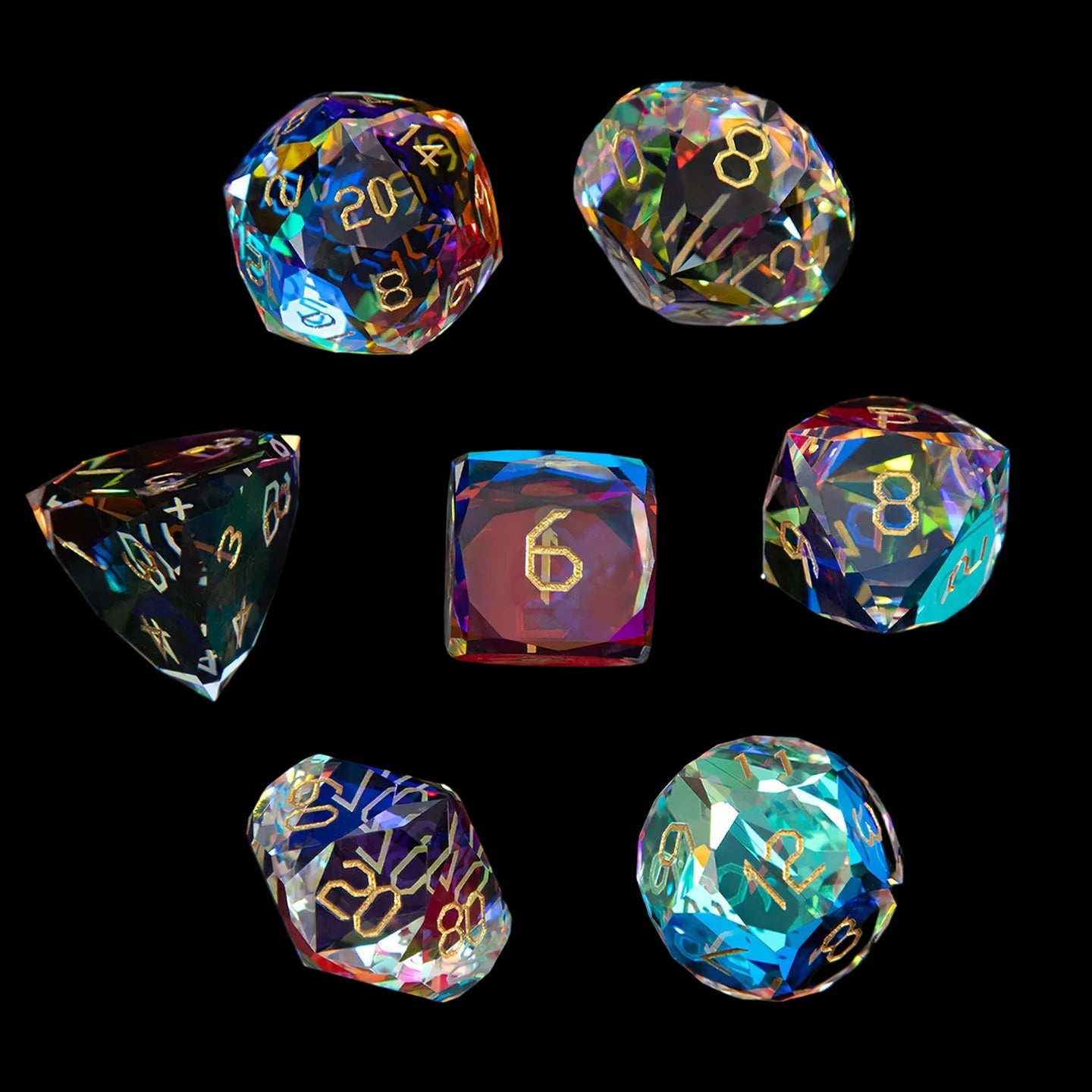 虹色クリスタルダイヤモンドカット7ピースダイスセット