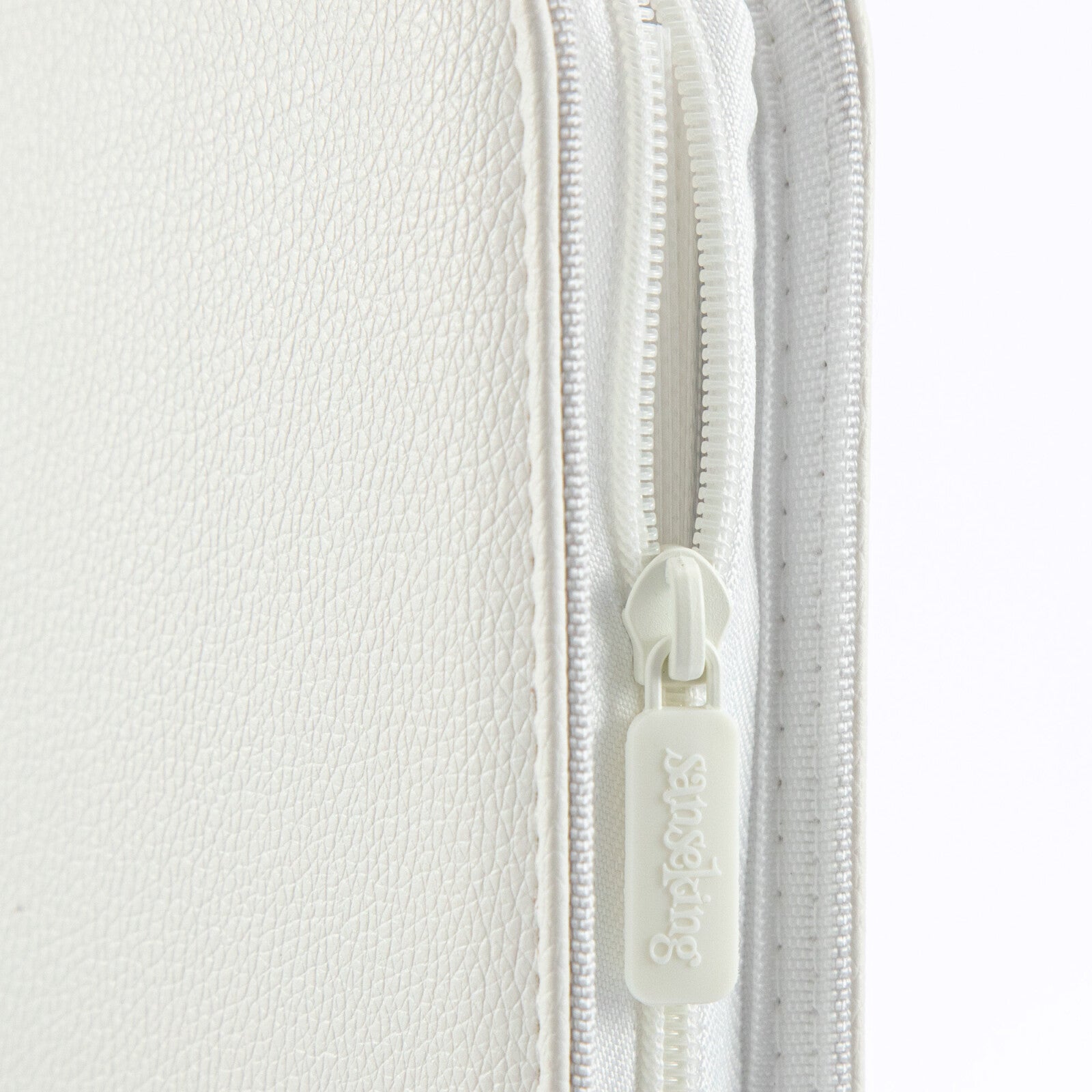 Elegant White PU Leather: A sophisticated, water-resistant exterior that stands out in any collection.