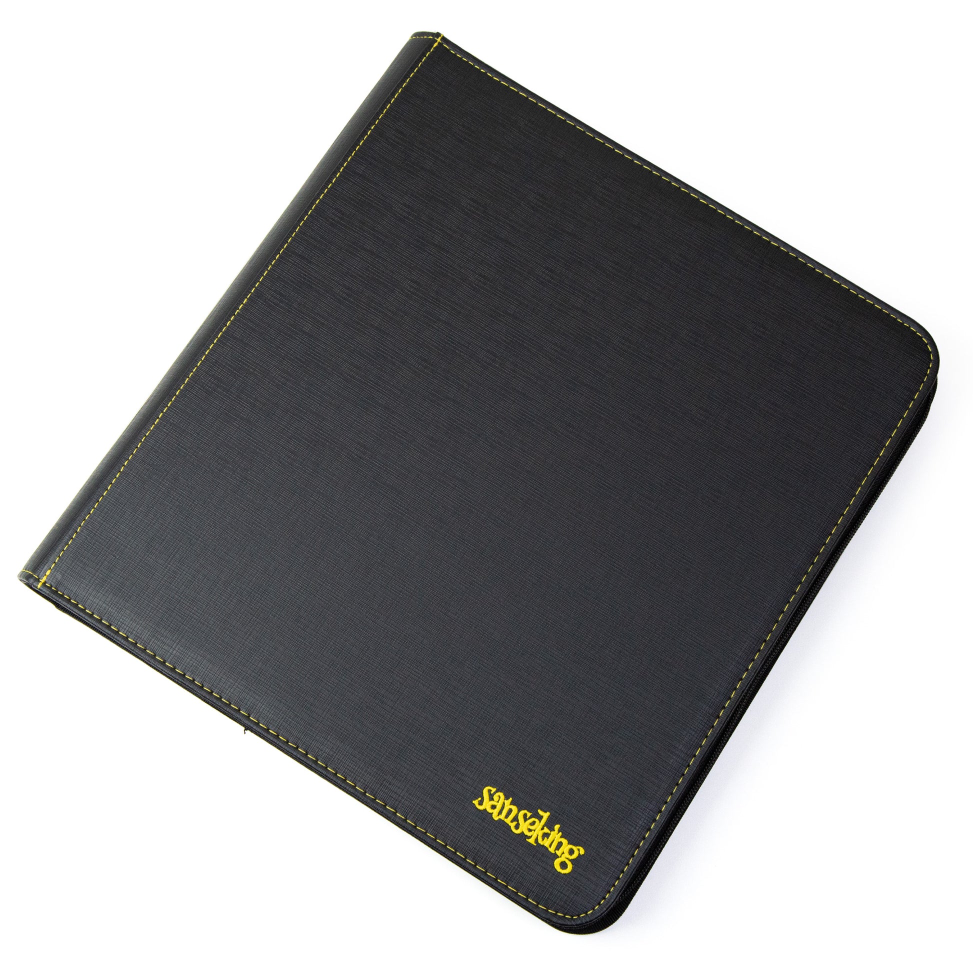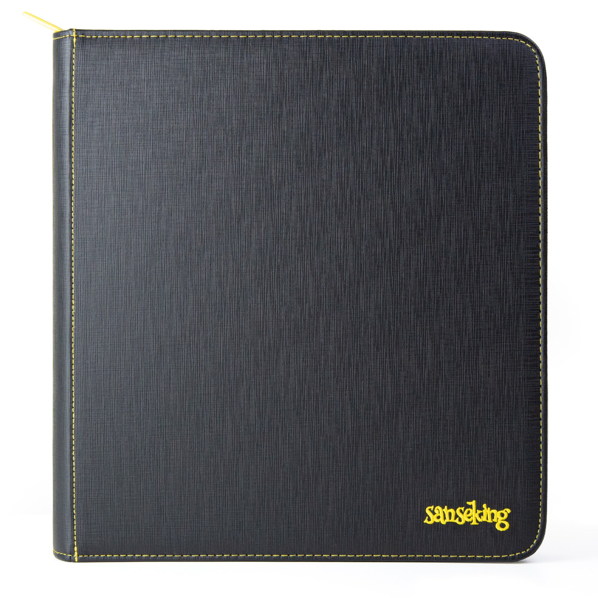 Black Grid 4/9/12-Pocket PU Binder with Waffle Pages