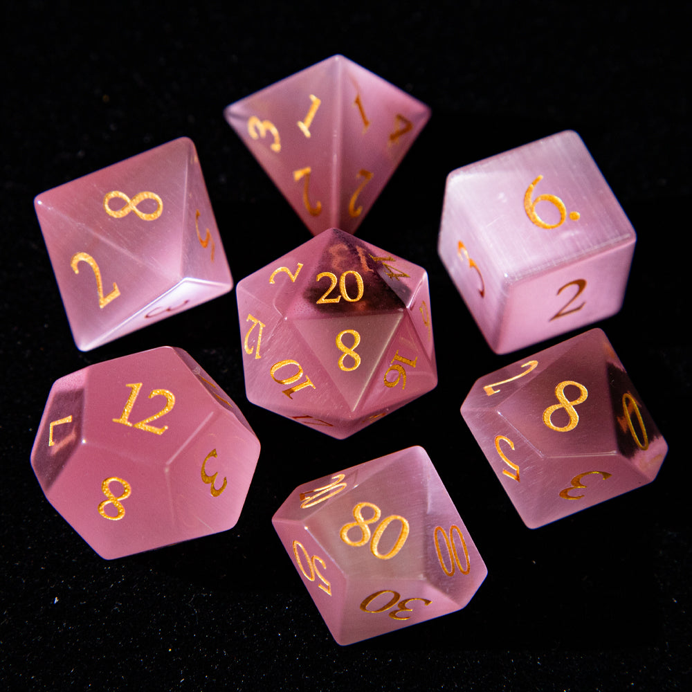 D&D Multi-faceted Gemstone Engraved Dice Set (Pink)