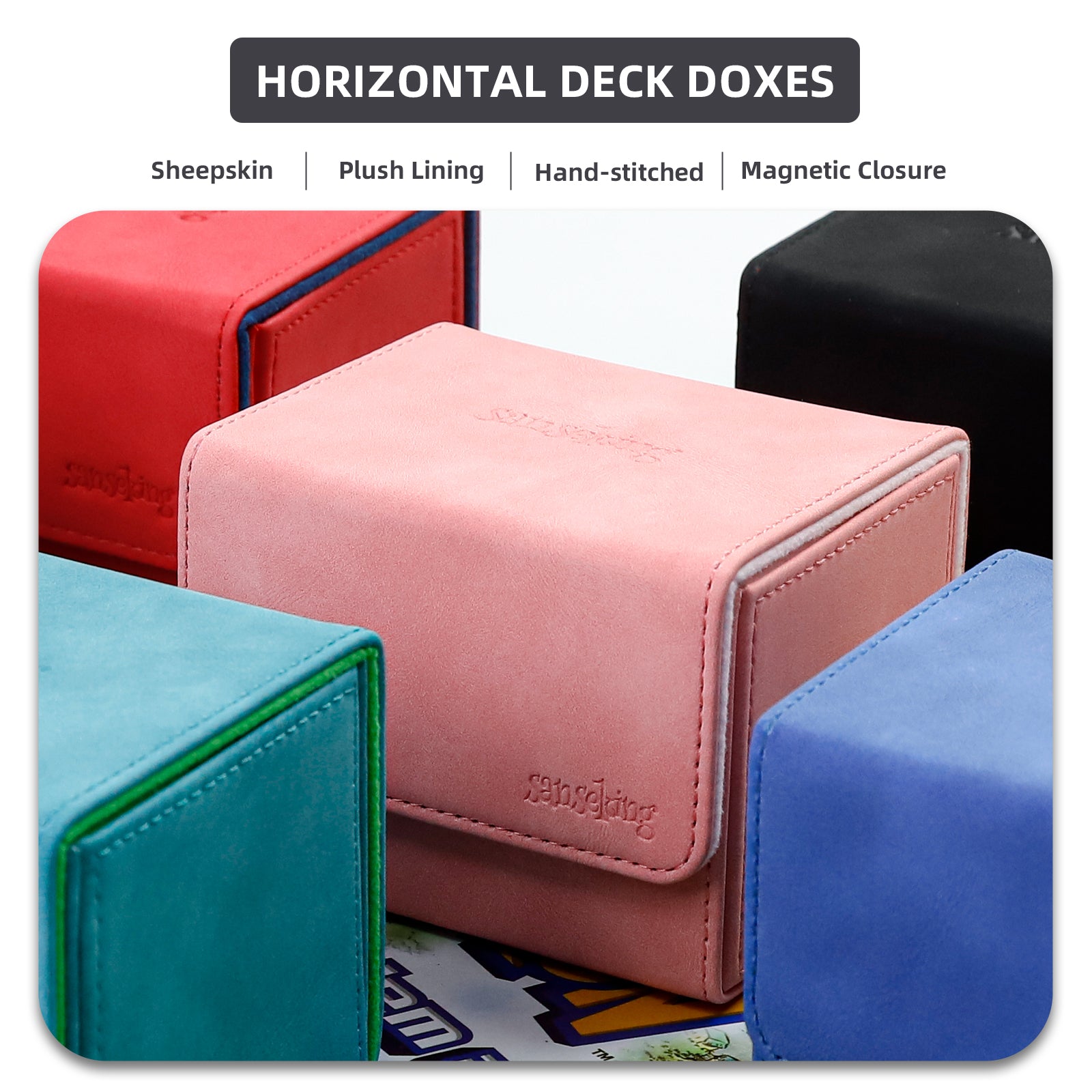 The Sanseking leather deck box is the ultimate solution for protecting your treasured Magic: The Gathering cards. Crafted from premium sheep leather, this durable MTG deck box is designed to safeguard your Commander decks and other TCG deck box collections. Whether you're looking for a blue deck box, green leather deck box, or a sleek black and blue deck box, Sanseking offers a variety of options to match your style.